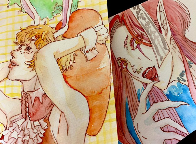 2 12 #アナログ絵 トレンド入りしとるので便乗🤟水彩好きだ〜!!!!!にじみとか色の境目を上手く落とし込めたり、逆に偶然を楽しめるところも好き🎨 #透明水彩 #アナログ絵で魅せてみよ 23/04/18 07:12