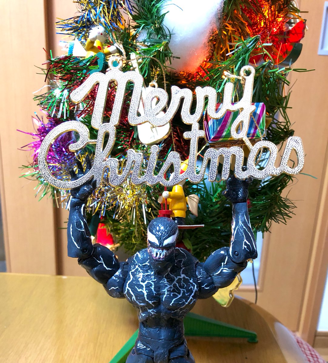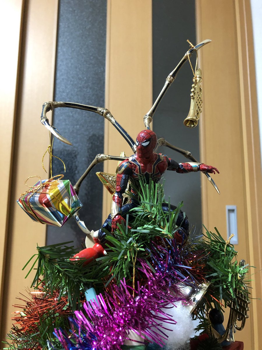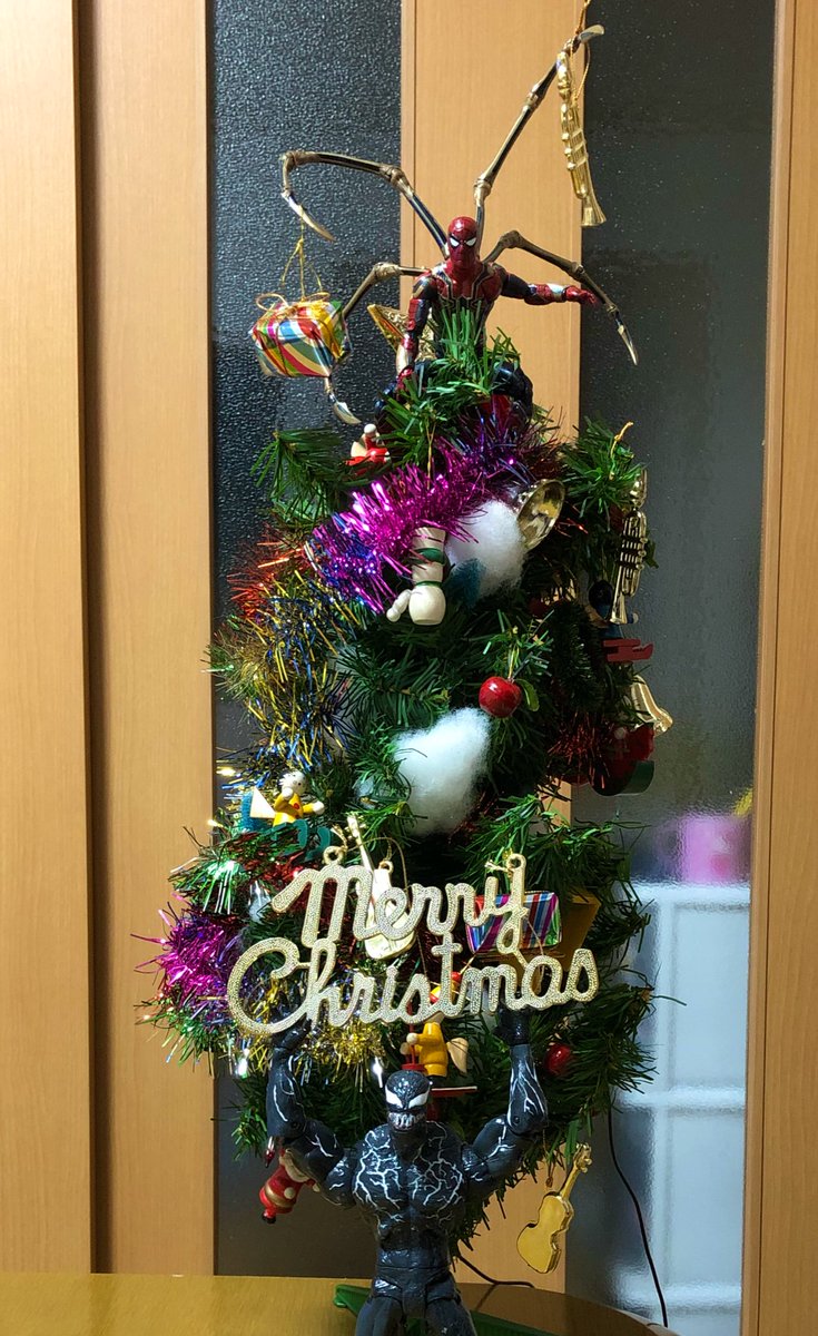 ツリーも飾り付けましたよ! アイアンスパイダーの本領発揮でございます!! #オモ写 #MARVEL