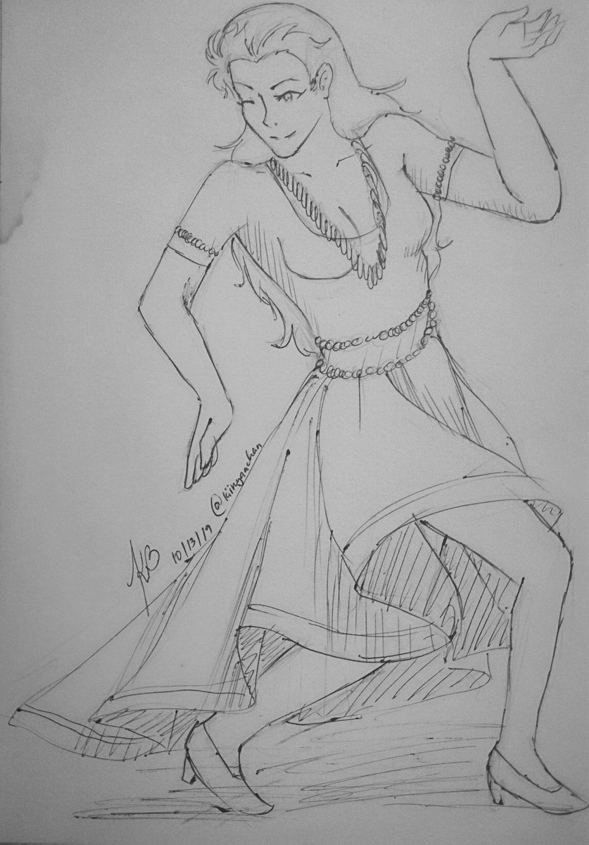 10) In swimwear In @SofiaEbby's story I made an OC too named Evelencia Silkenmoon whic is based from my Dragonfable username. I really thought it was only swimsuit so I drew a girl than of one of my male OCs. Also I am not good posing orz. #Inktober2019