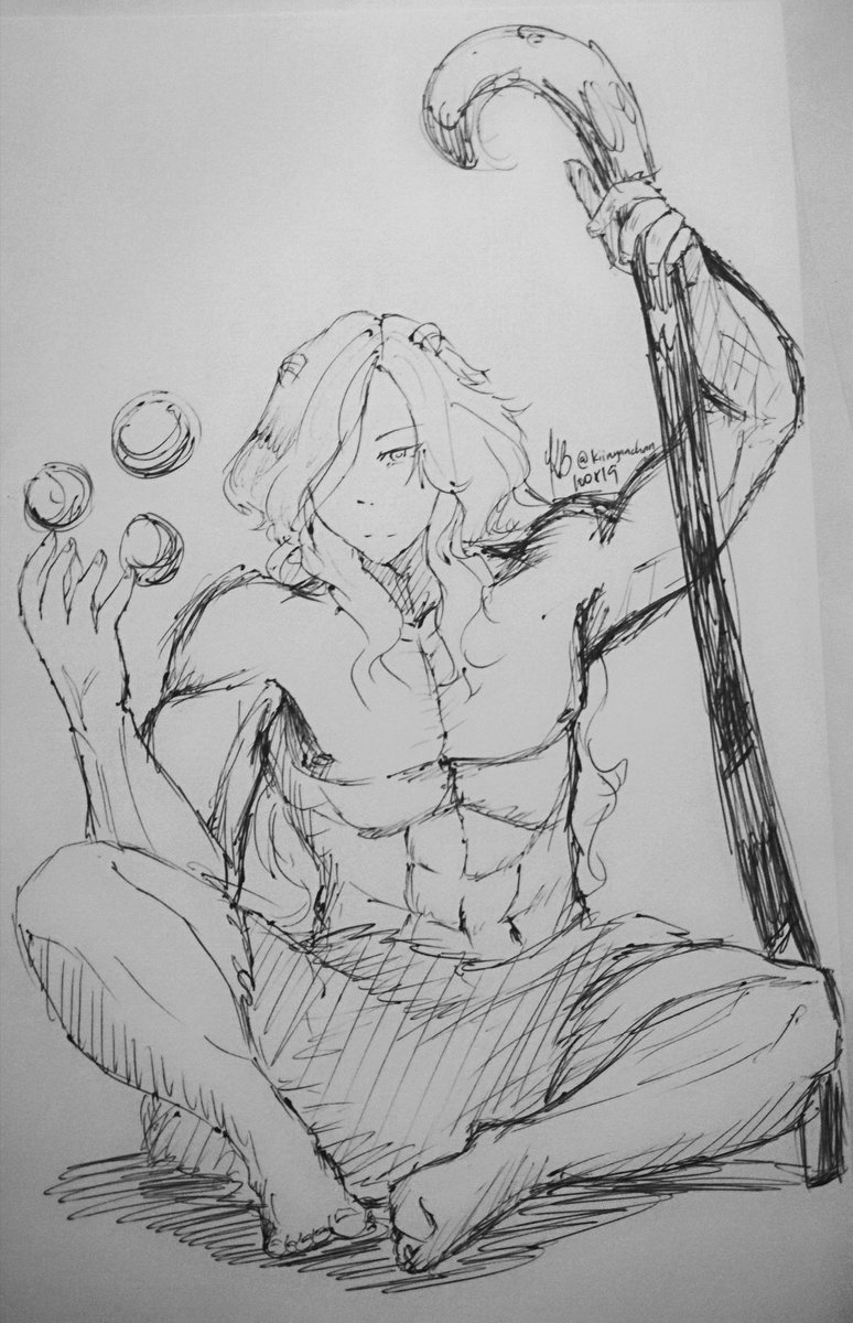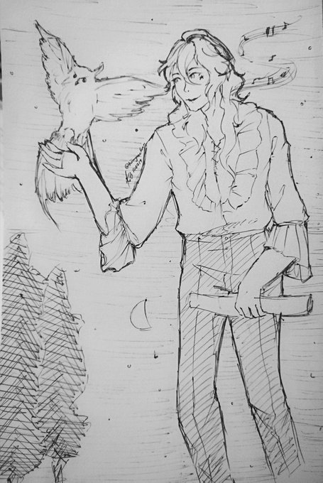 7) with an animal or Pokemon So I tried drawing an owl but it looks weird. Featuring Nikolas Silkenmoon a traveling singer from my original story 'If and only if'. He is based from Natsuki since I was afraid on making a Canon x OC back then. #Inktober2019