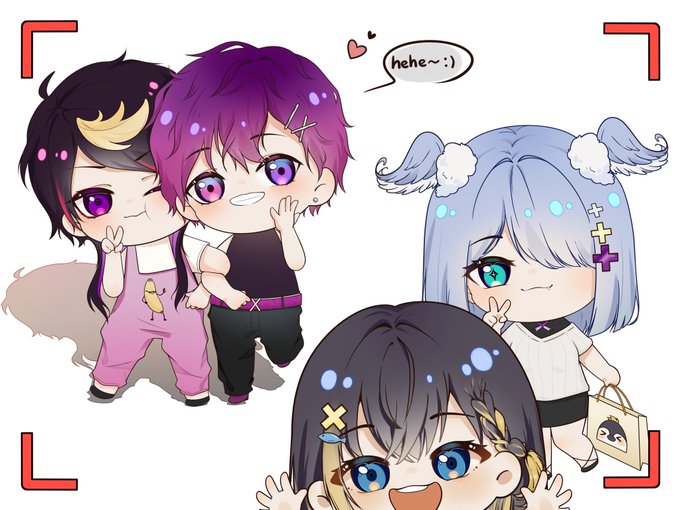#YaminoArt #Ikenography #ShuIke 简笔画~冷色组贴贴💜💙😌