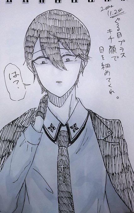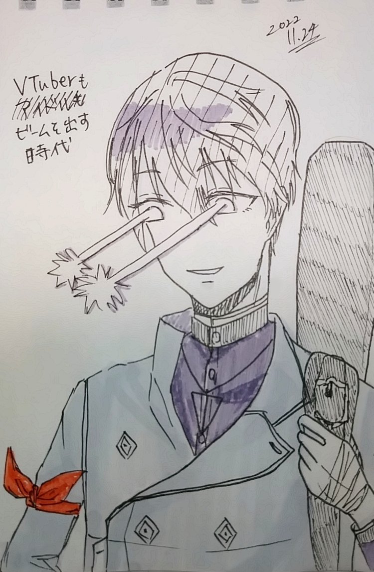 1 5 #今月描いた絵を晒そう 昨日忘れてた 色鉛筆の⚔️は没ったやつだけど一応hptrカラー入れてみようと思ったやつ 22/08/01 21:44