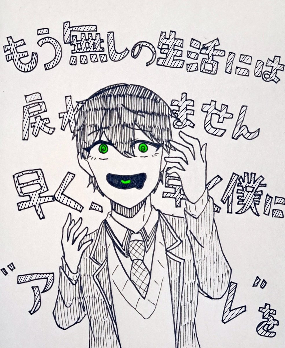 #今月描いた絵を晒そう 昨日忘れてた 色鉛筆の⚔️は没ったやつだけど一応hptrカラー入れてみようと思ったやつ