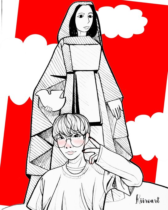 #Virgendelapaz Day 20. Seguimo por el turismo en Venezuela, Seugmin junto a sus compañeros fueron a visitar la Virgen de la paz en Trujillo, no pudo evitar tomarse una foto. #inktober #inktoberzuela #inktoberday20 #Inktober2019 @inktober @Stray_Kids #kpop #Seugmin