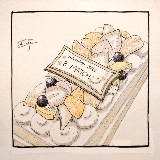 #inktober #inktober2022 #inktober2022day8 #フルーツケーキ 生クリームケーキに、盛りだくさんのフルーツ、というベストマッチ。 今日食べたケーキがめちゃウマでしたので、無理矢理こじつけました。