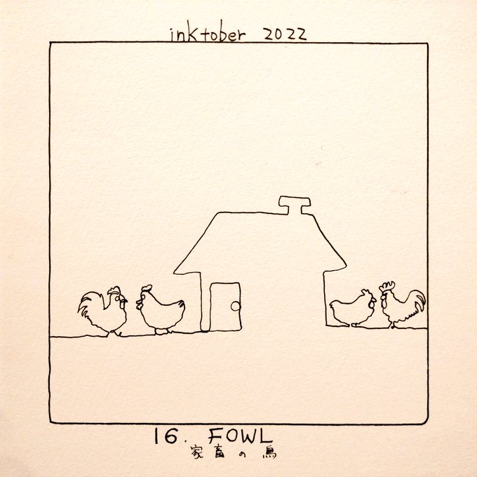 #inktober #inktober2022 #inktober2022day16 #インクトーバー #ニワトリ にわにはにわにわとりがいる うらにわにはにわにわとりがいる ていう一筆書き風。
