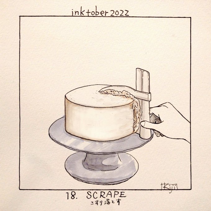 #inktober #inktober2022 #inktober2022day18 #scrape scrapeって何?と調べていたら、こんなスクレーパーがあるのを知りました。 ケーキの生クリームの余分を削り取って平らにする作業を見るのが好き。