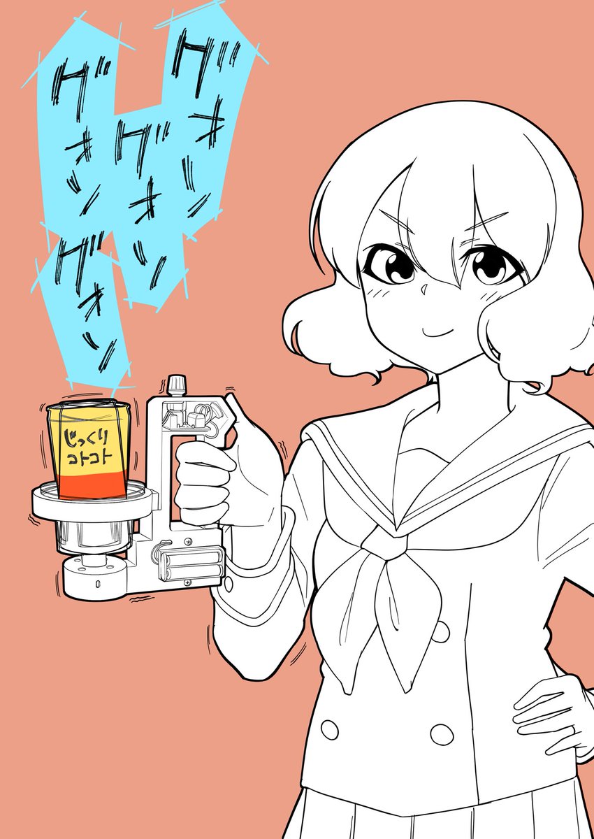 缶に入ったコーンスープのコーンを一粒も残さずに飲むことができるマシンを持つ黄前久美子を描きました