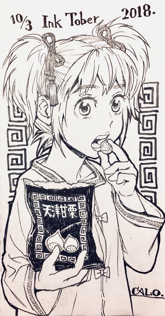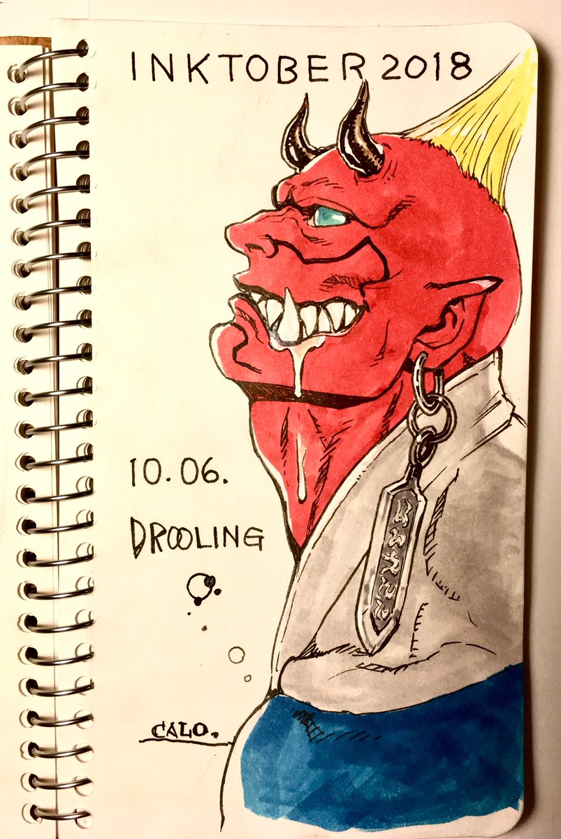 drooling #inktober #inktober2018 #inctober #Inctober2018 #インクトーバー #インクトーバー2018 #かろトーバー コピック塗り。腕で口元をぐいっと拭うしぐさの2秒前