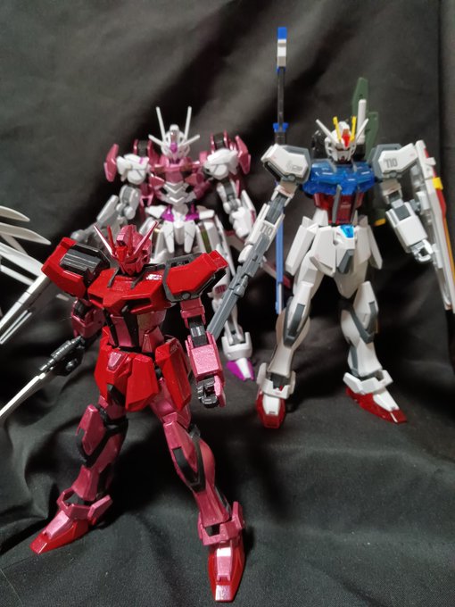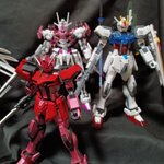 RGストフリ EGストライク2体 HGストライク 今月はストライクしか作ってない💦 EG1体はスカイブルーの塗料をを買ったので試しに塗ったら思った以上に青かった💦 HGはずっと塗り足しててここで落ち着きました #今月作ったプラモ晒そうぜ