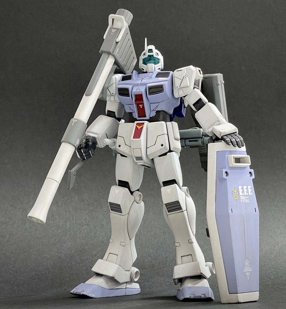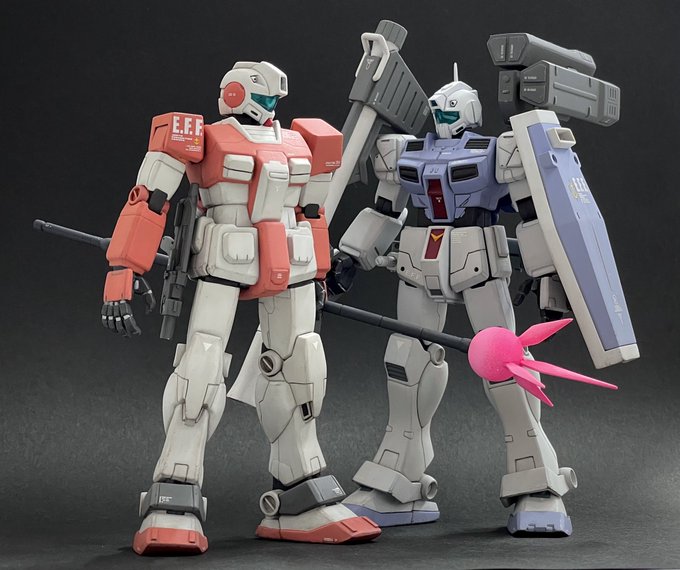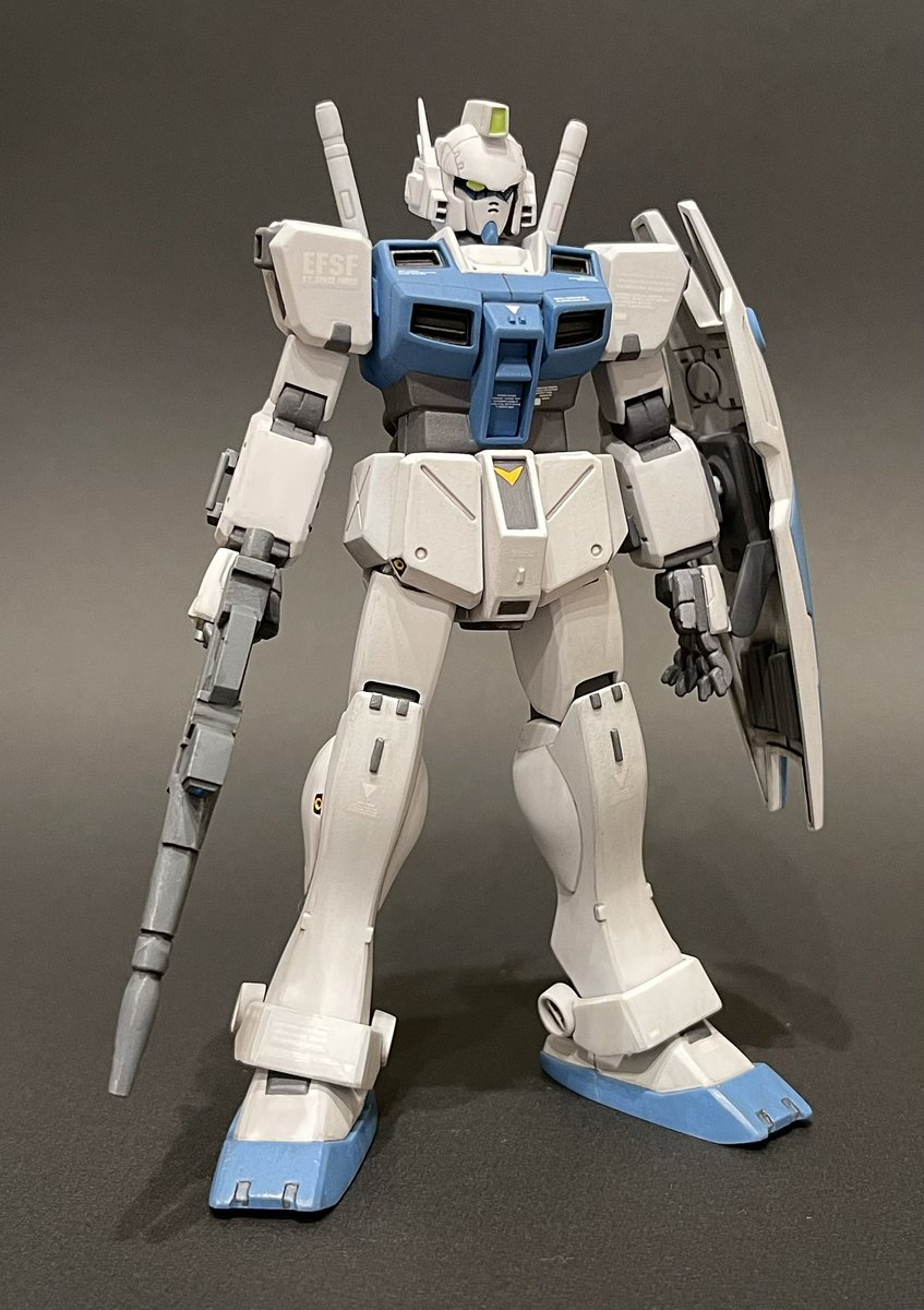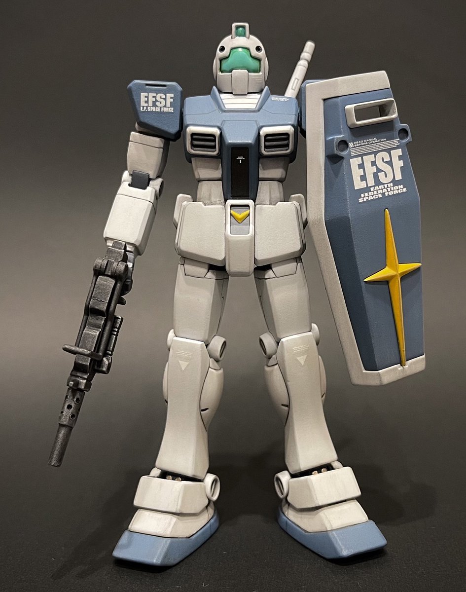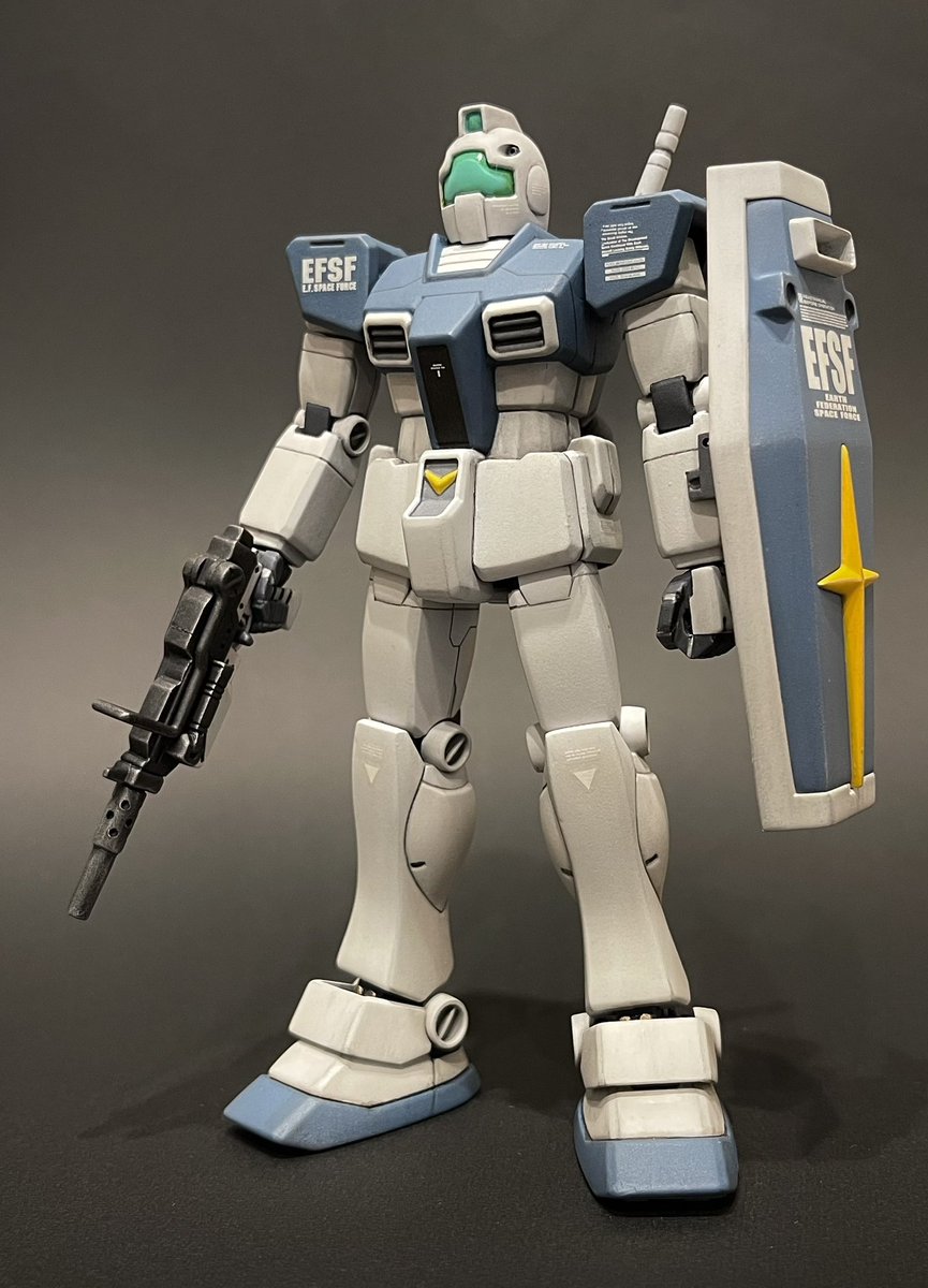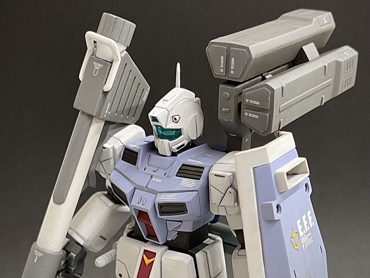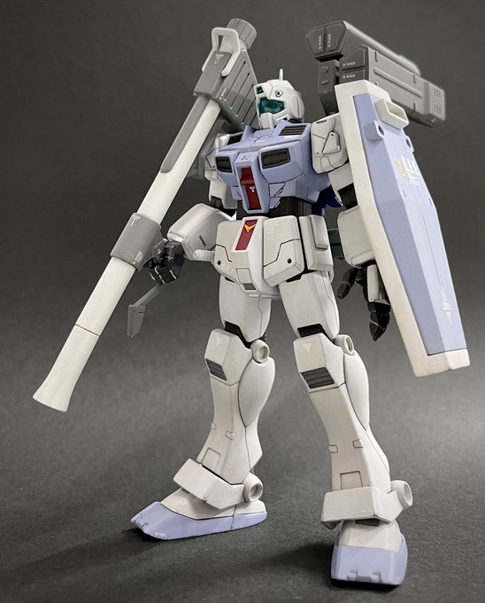 1/144HGUCジム寒冷地仕様、無事完成しました!今回は敵地強襲型としてディテールの追加変更や装備を充実させることでやや重厚な印象にしてみました😊塗装も久々にやりたかったカラーリングにできたので満足です🖌 #ガンプラ