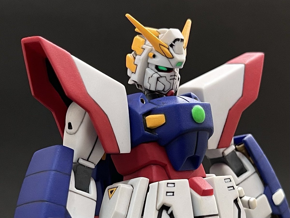 旧1/144シャイニングガンダム完成しました!キット本来の形状ラインを活かしつつ劇中の様な佇まいに魅せられるよう完成を目指しました。改修箇所は股間接に首、頭部と握り拳程度です。思った以上に楽しめました😊🖌 #旧キット #ガンプラ