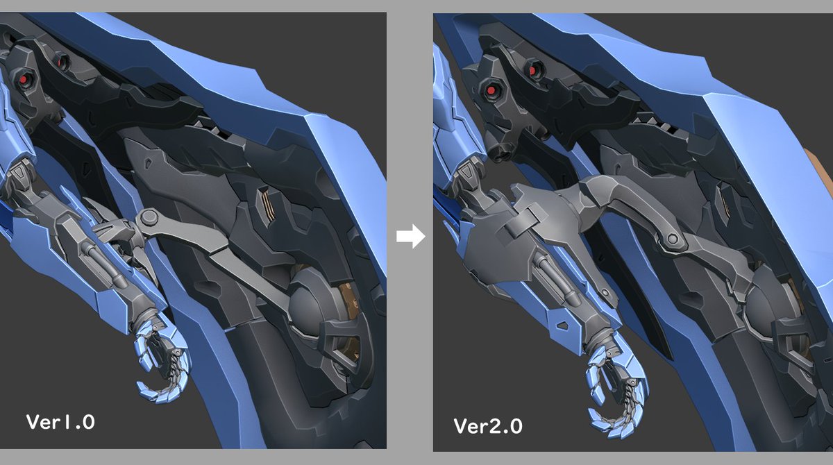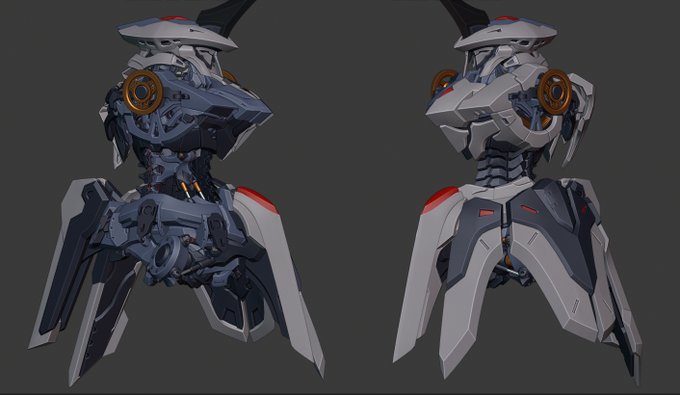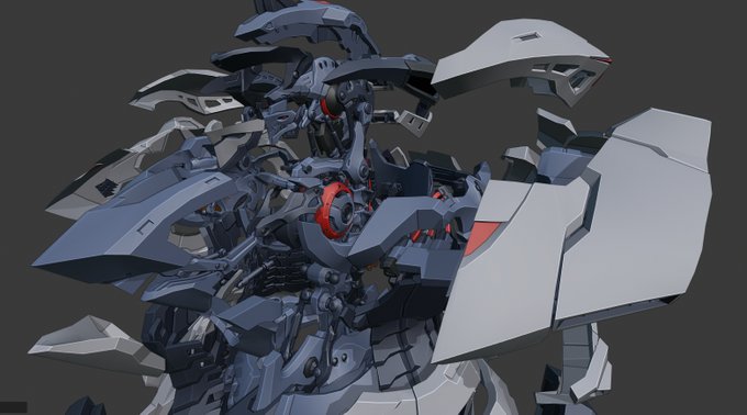 内部の骨格は大体決まって来た、 可動時にパーツ同士が干渉しないように デザインにしてるから時間かかるー 立体化時に可動出来るかは不明 表面はあんまり変わってないけど 内部は色んな所が変わってマス