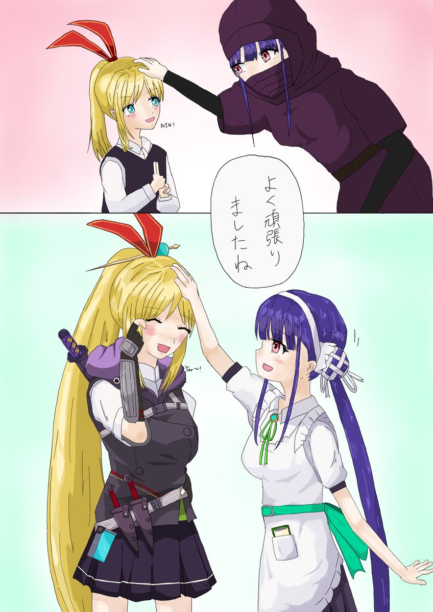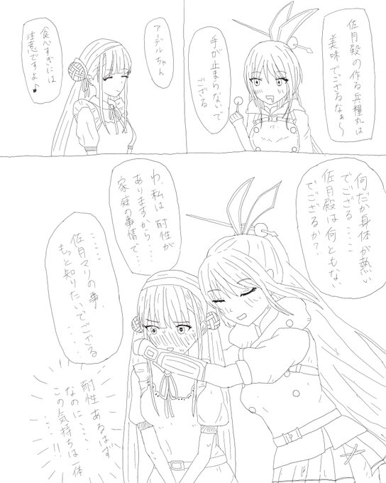 (4章前編アーさん交流、微ネタバレ) ミスってたので上げ直し 絵はまだまだ下手っぴだけど大好きなアーマリ頑張って描きました! 兵糧丸には耐性あるけど好意を向けられることに耐性のない佐月マリだ! #ヘブバン #ヘブバンファンアート #hvbnFA