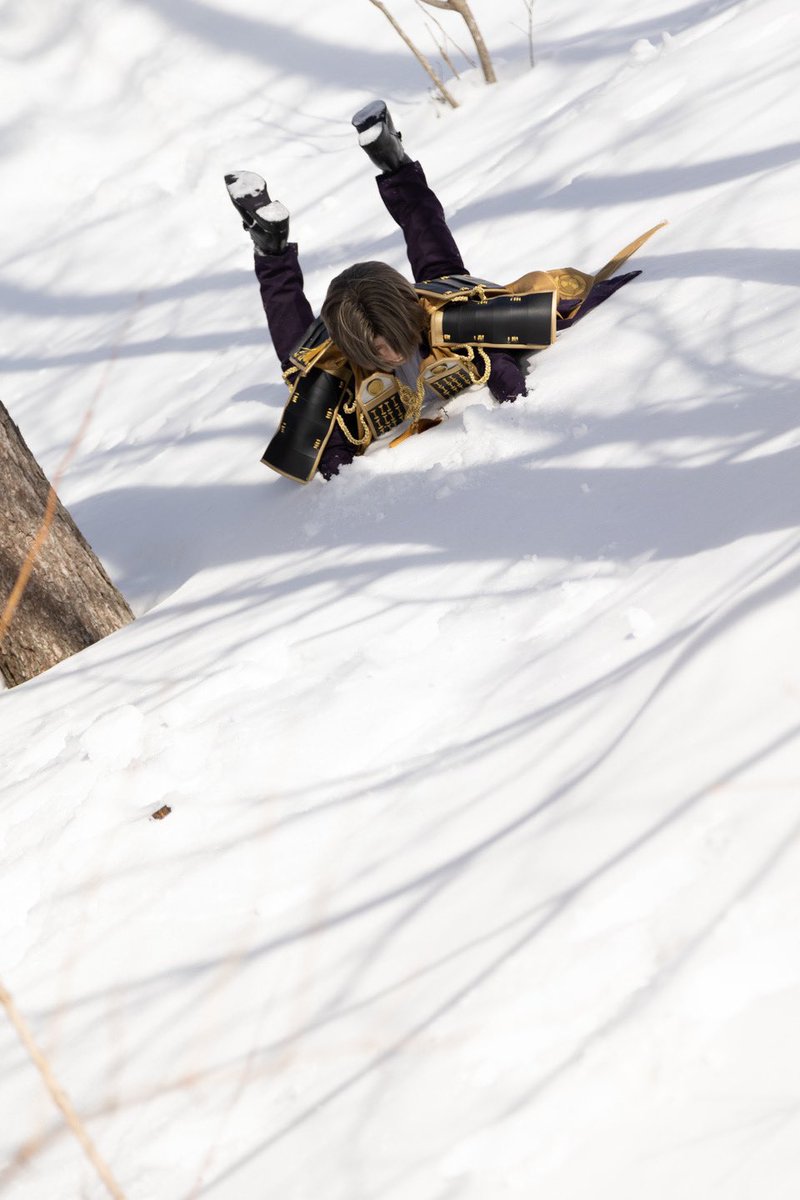 14 64 #へし切長谷部を見るとハッピーになる 雪にはしゃぐ長谷部と調子に乗ってズッコケ長谷部 photo:TAKAさん 23/01/22 22:20