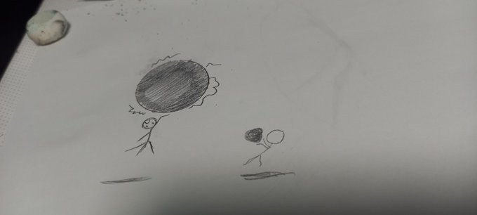 ようこんな絵小学生の時描いてたわ〜 頭の中でドカ〜んとかジュクシとか言いたがら描いてたな〜w てかなんでこんな絵かいたんやろw もう寝ようかなw #絵 #イラスト #棒人間 #絵描きさんと仲良くなりたい #イラスト好きな人と繋がりたい