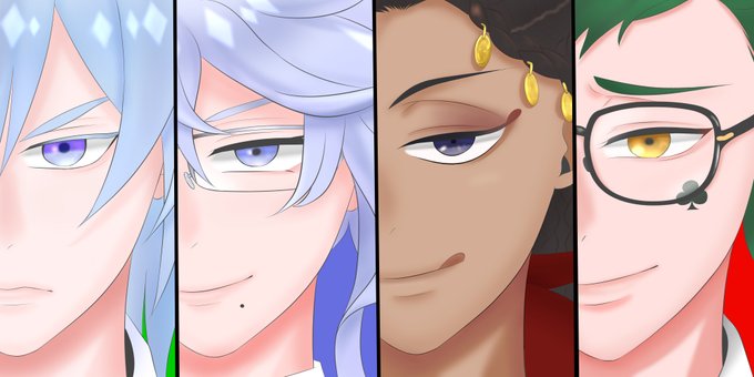 0 2 ロード画面の4人を描いてみた。 #ツイステファンアート #twstファンアート 20/05/27 00:50