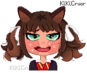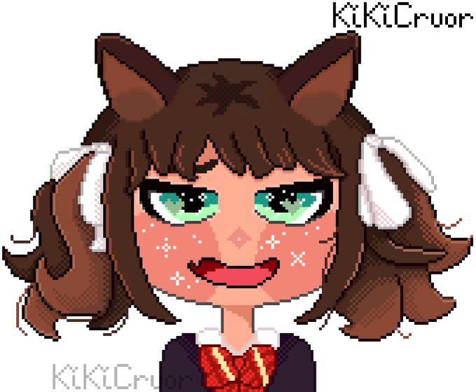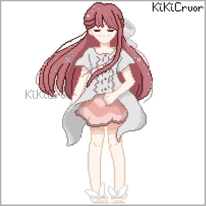 @pokibloodfallen here is my oc, "kiki elune cruor", in my simple, chibi, pixel art style! 🎀🤍🌙 #artsupport #artshare #pixelart