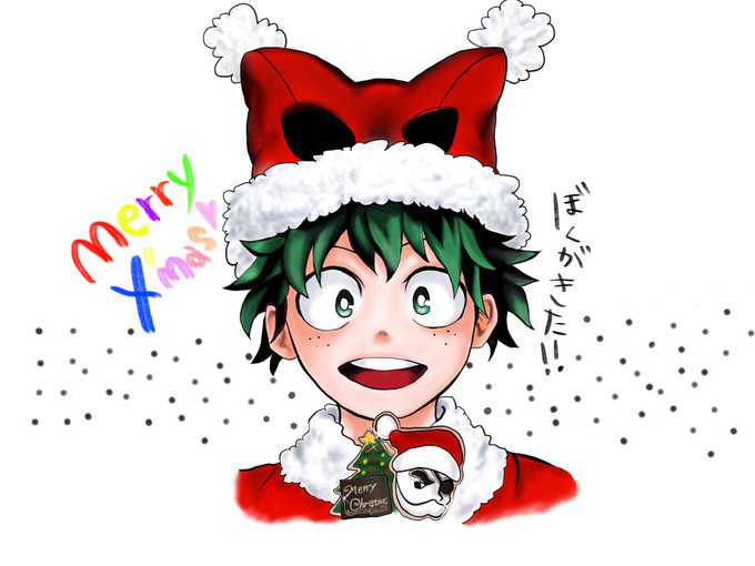 iPadででっくんサンタ🎅❤︎ 今週のジャンプのやつ、、ケーキの苺まで描く体力ありませんでした…🎂 ちょっと早いですが、 🎉メリークリスマス!🎄 #イラスト好きな人と繋がりたい #ヒロアカ絵描きさんと繋がりたい #絵描きの輪 #絵描きさんとつながりたい