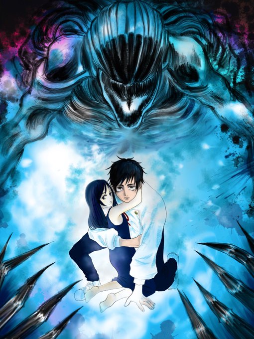 ようやく出来たーー #呪術廻戦 の乙骨と里香✍️ 原作と映画の塗り方で迷い迷い描いてたからか、うぅん…って感じの出来に…里香後ろに居るのに里香抱いてるし…😂刀持たせたかったけど技術が…笑 #デジタルイラスト #絵描きさんと繋がりたい #イラスト練習中 #イラスト好きと繋がりたい #ファンアート