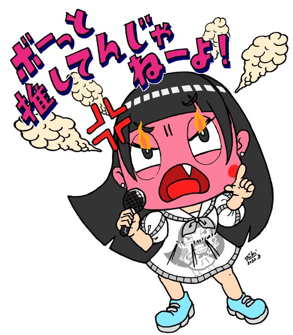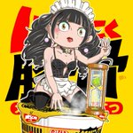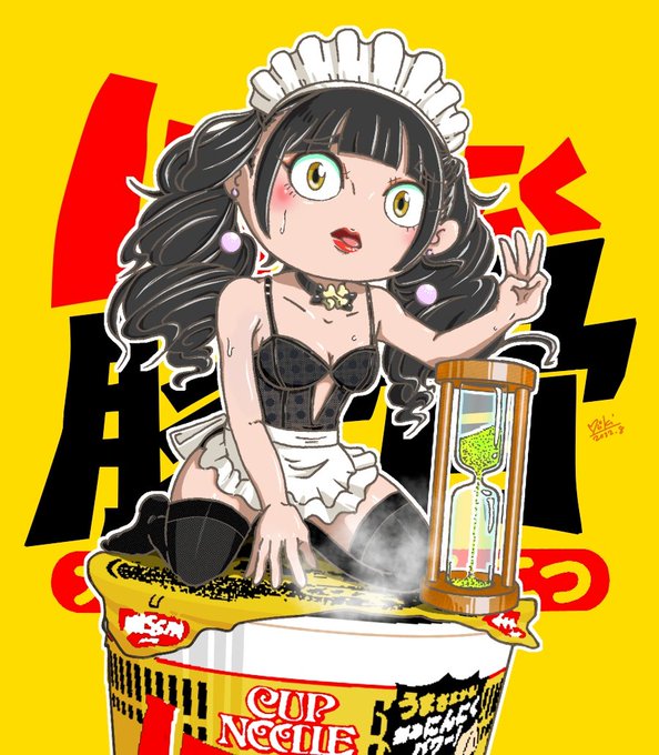 まだまだ、暑い日が続きますね そんな時は スタミナつけるニンニク豚骨です。 3分お待ちくださいっ! #日清でんぱオンライン お尻が熱いですが、我慢です。 りさくん。私はドラキゅ はーい、出来上がりましたよ。伯爵さま。召し上がれ💕 😨🤢✝️ #でんぱイラ
