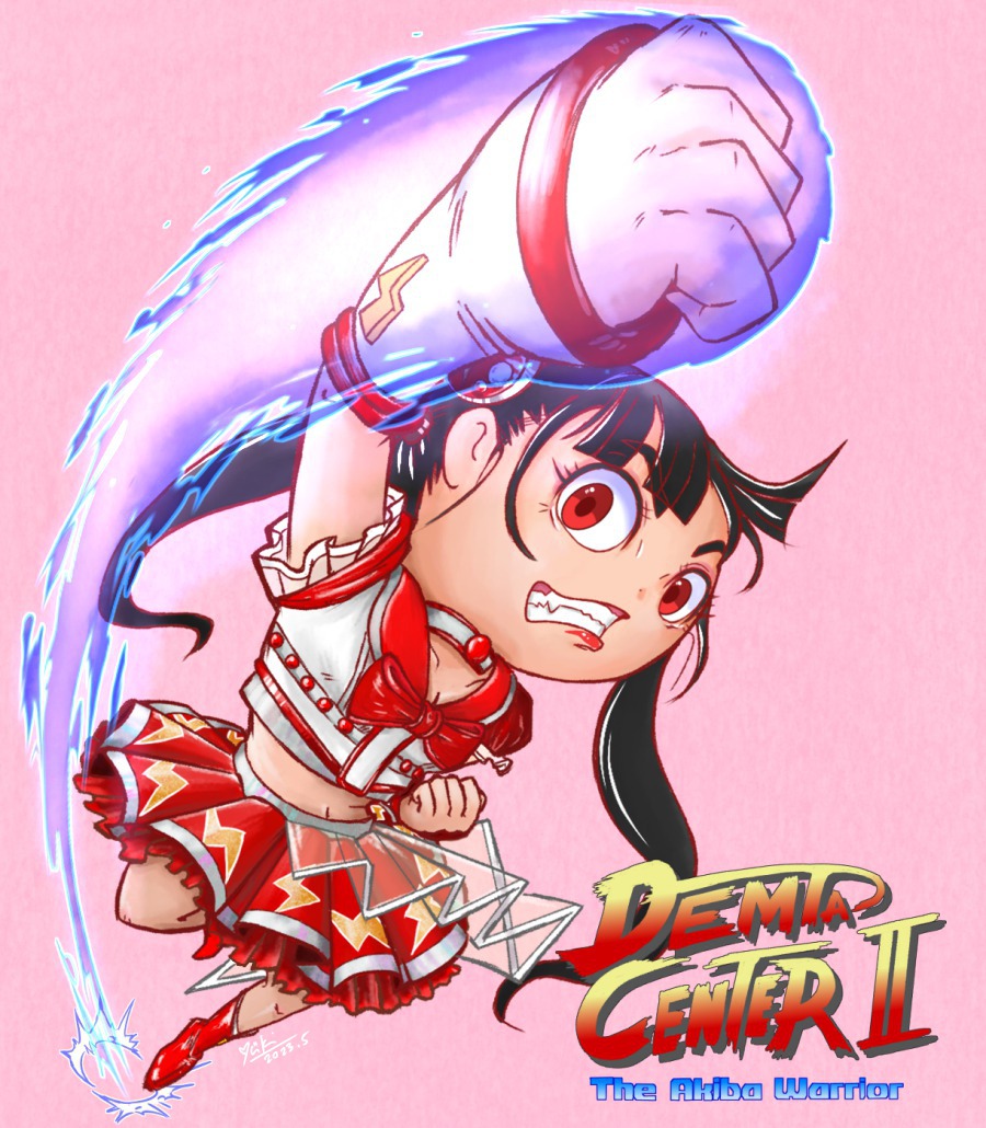 #日清でんぱオンライン 野盗:女に刀は似合わないぜぃ。腰のモノいただこうじゃないか! りさ:ほう、この焙殱唐辛子を味わいたいと、覚悟はできておろうな 野盗:なにぃ、殺るってかいっ! りさ:あなたの“おてもと”割らしていただきます… 野盗:な?、火?ヒぁ辛いぃー旨いー! #でんぱイラ