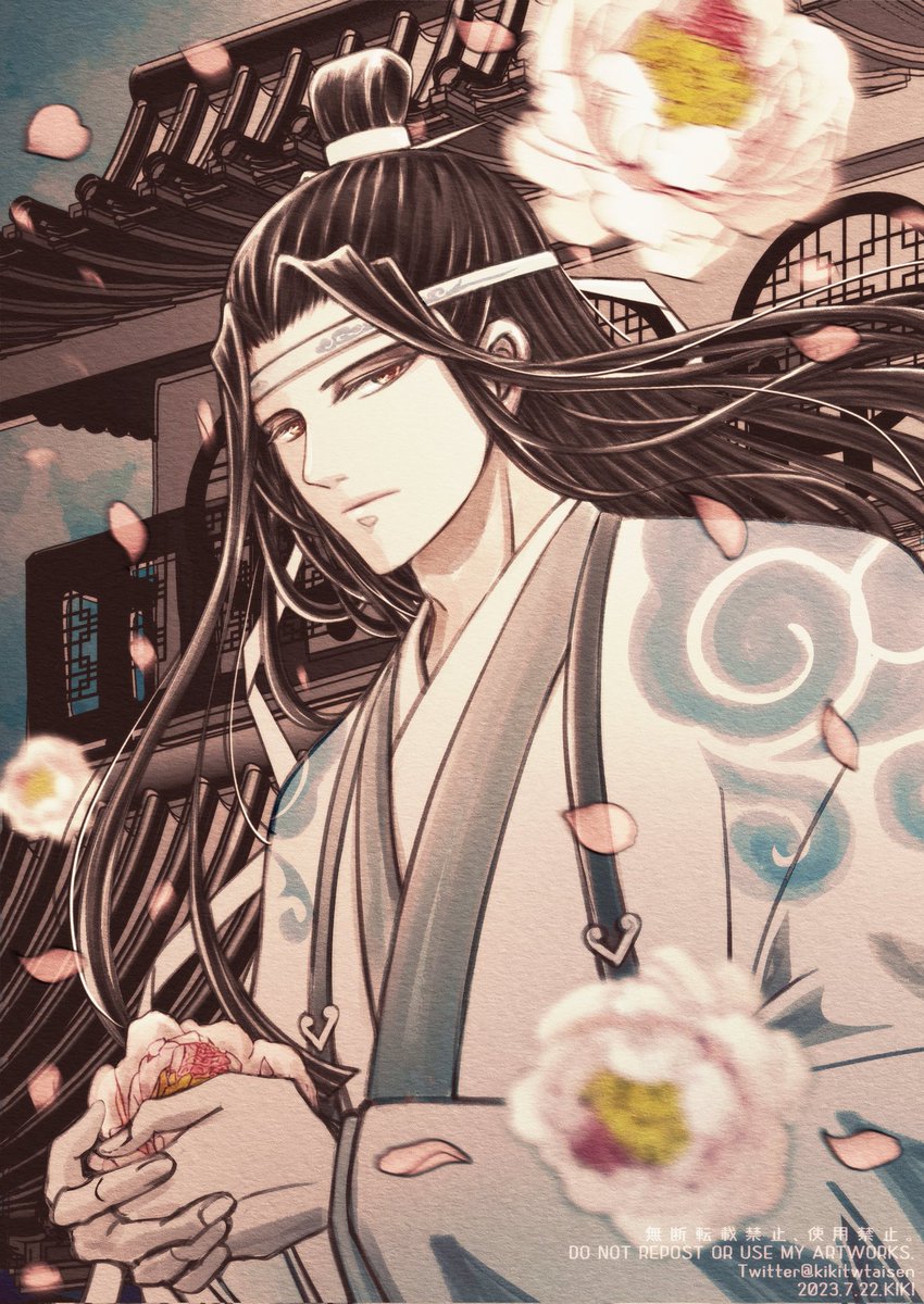 #皆さん線画と塗った後を見せてください #魔道祖師 #忘羨 便乗😊 最近のやつ、線画は塗りかけの。 髪の毛はよく迷子になります