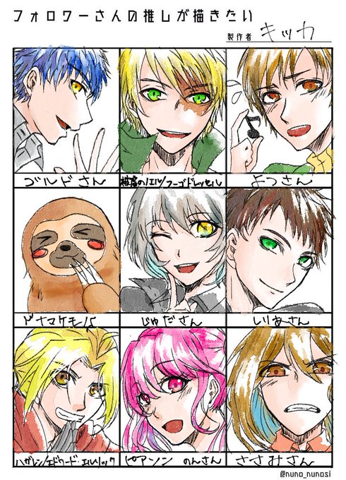 5 38 リプくださった皆様有難うございました!拙い水彩で申し訳ない!初描きが多くて楽しかったです🥰🥰 #フォロワーさんの推しが描きたい 21/06/13 13:42