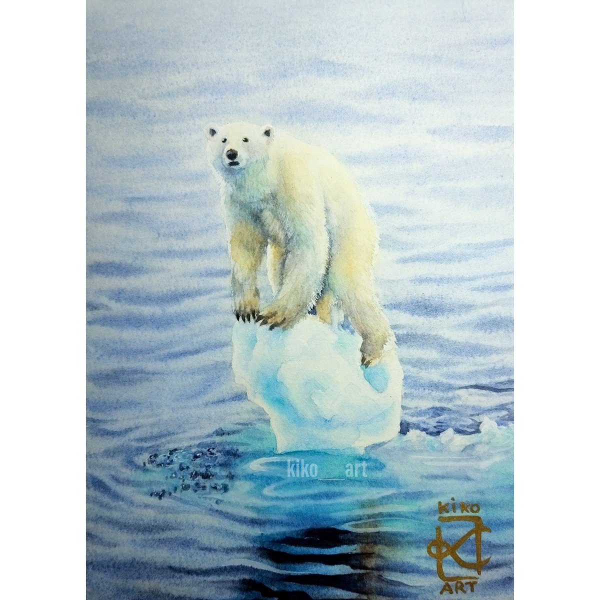 "Huh, where's the ice go? Oh no it's all melting away..... Where should I go now? 😢" A watercolor painting of polar bear that clings on tight as the iceberg's he's resting on melts away... #watercolor #zonakaryaid #wildlifephotography #wildlife #illustration