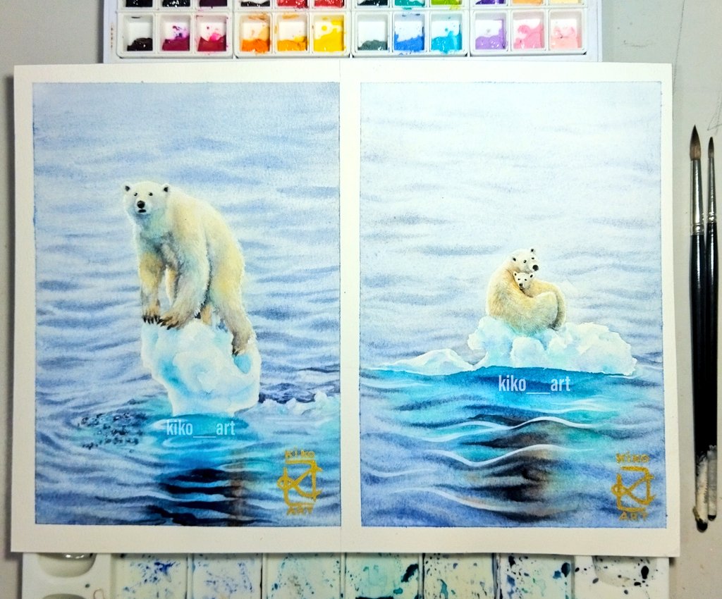 "Mom, where's our home? Why the ice melting away? I'm starving, mom....." #watercolor #GlobalWarming #climatecrisis #climatechange