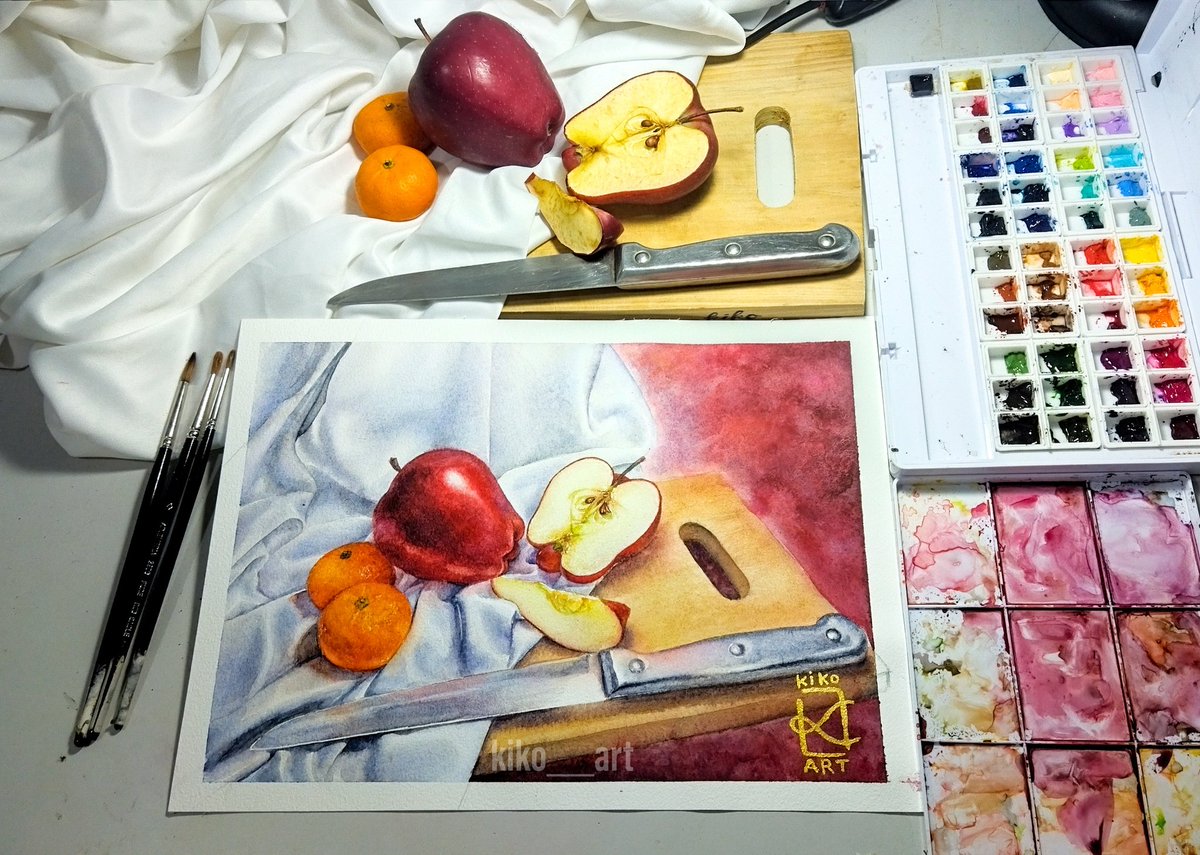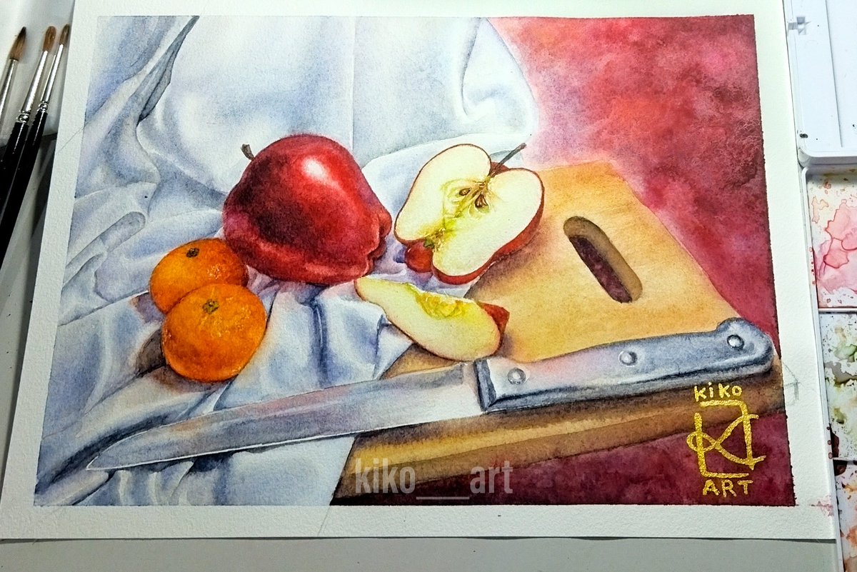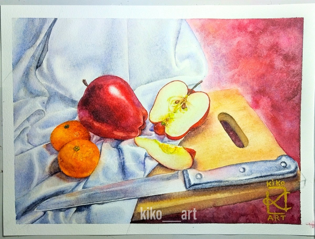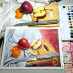 " One apple a day keeps the doctor away "🍎✨ watercolor painting practice #StillLife #painting #watercolor