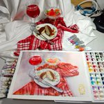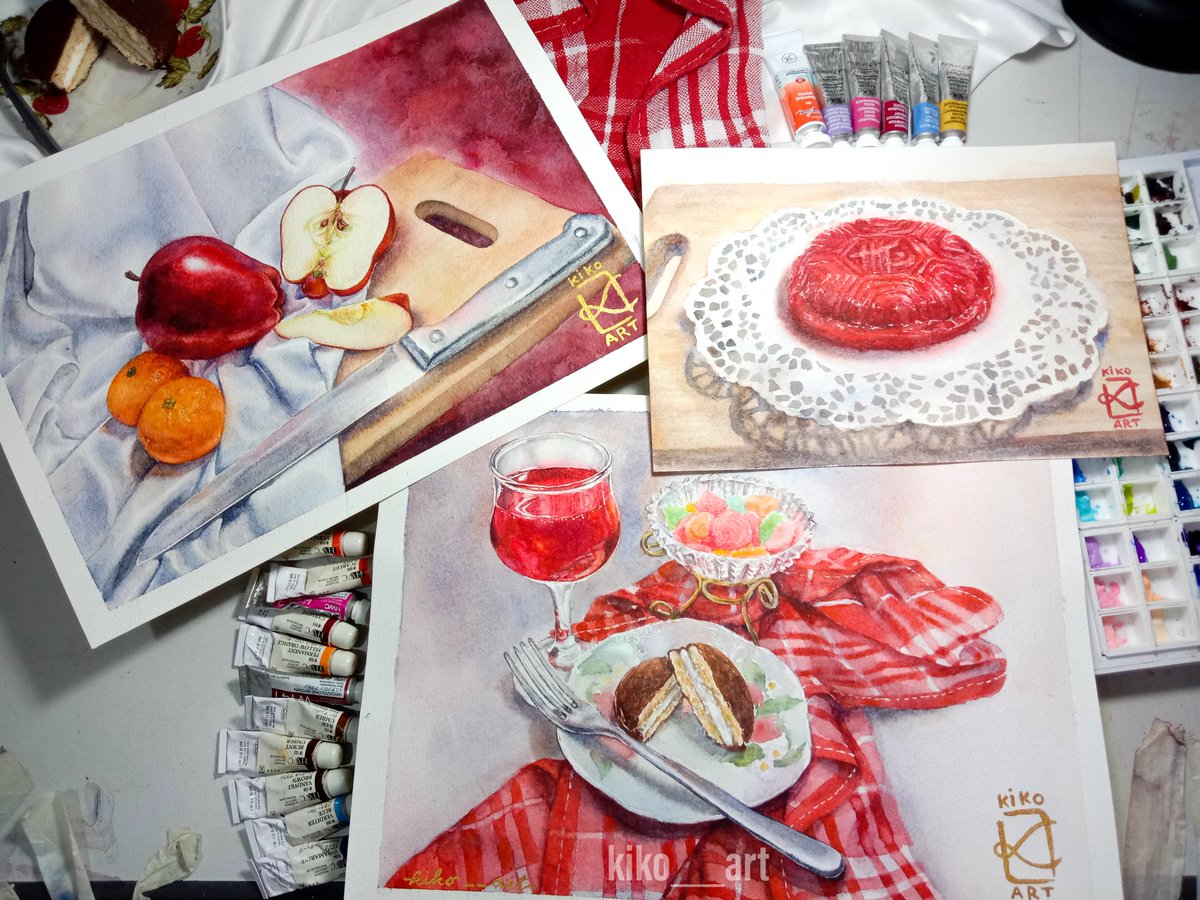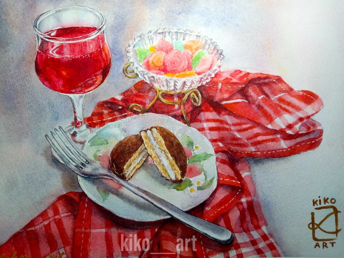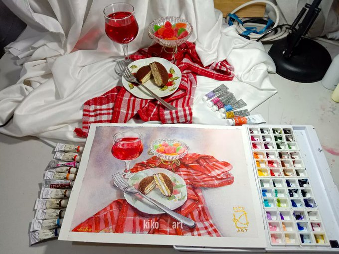 Set up reference (yes I use my own snacks for painting) and close-up details ✨ #watercolor #artidn #zonakarya @CmsnArtist_Id @cmsn_ART #food #tasty #Valentine #ValentinesDay2022