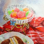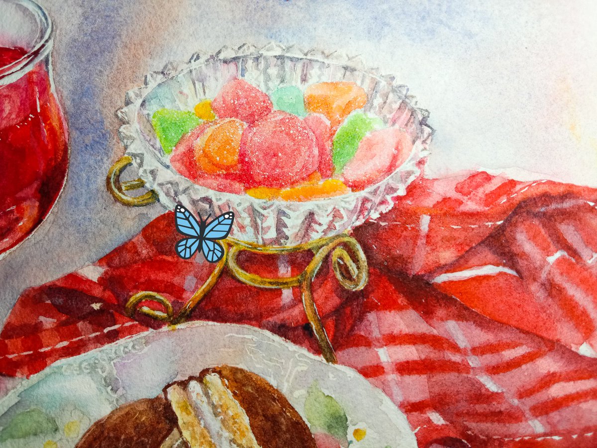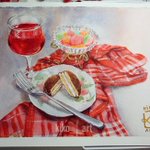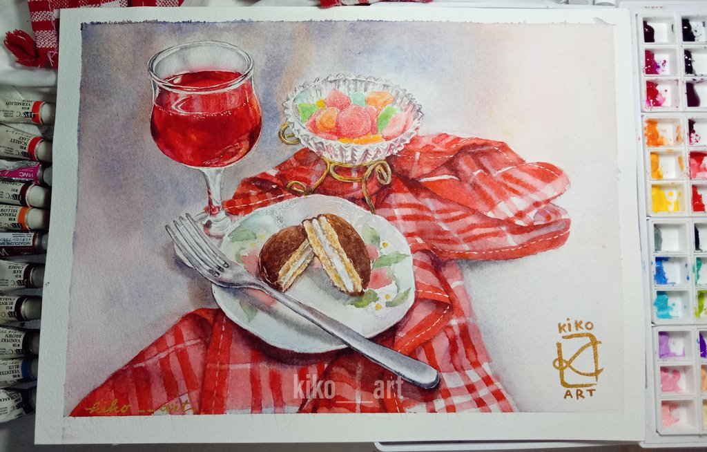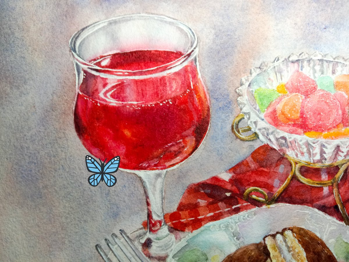 It's snack time! 🍷🥧🍭✨ #watercolor #zonakaryaid #foodillustration #illustration #ValentinesDay #art
