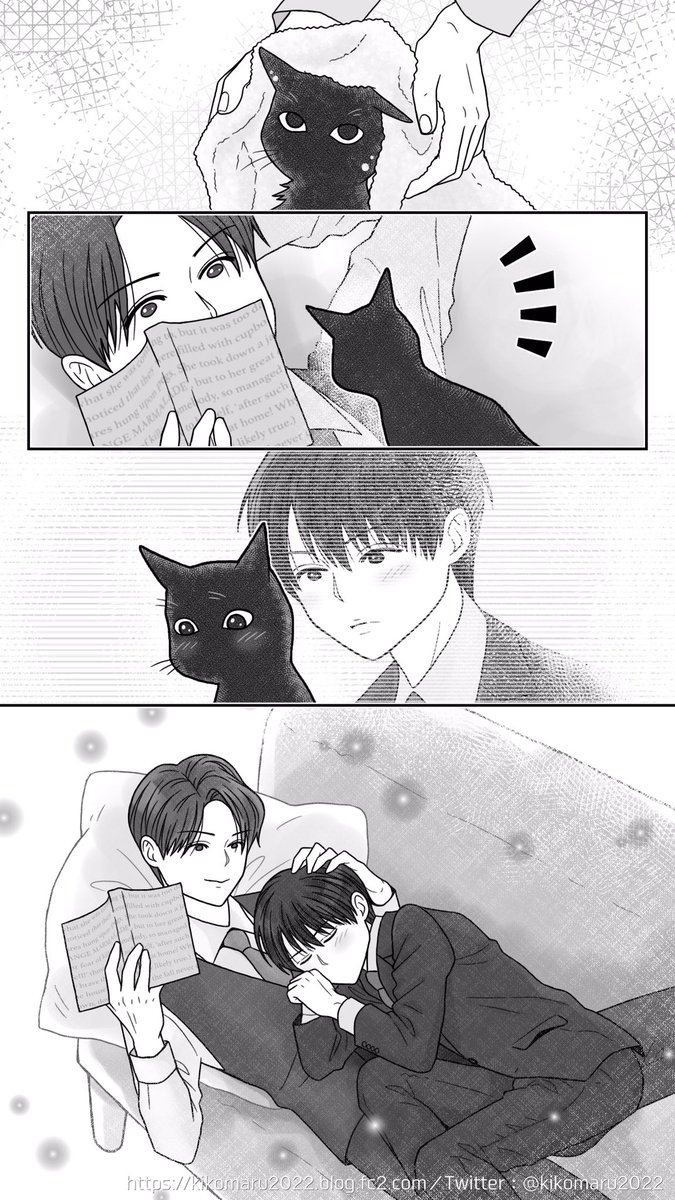 連れて帰った。 やはり あの猫は青波(眼鏡なし)だったらしい(パロ)。 あるよね! 自分を人間だと思ってる動物が人間を好きになっちゃうの! 豊青で描いてみちゃった #創作BL twitter.com/kikomaru2022/s…