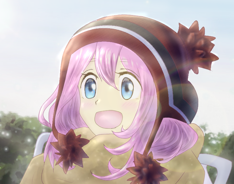 麓キャンプ場で、ふじさんからの日の出に感激するなでしこちゃん、を描きました! #ゆるキャンΔ #各務原なでしこ #アイビスペイント