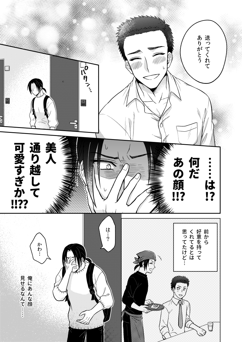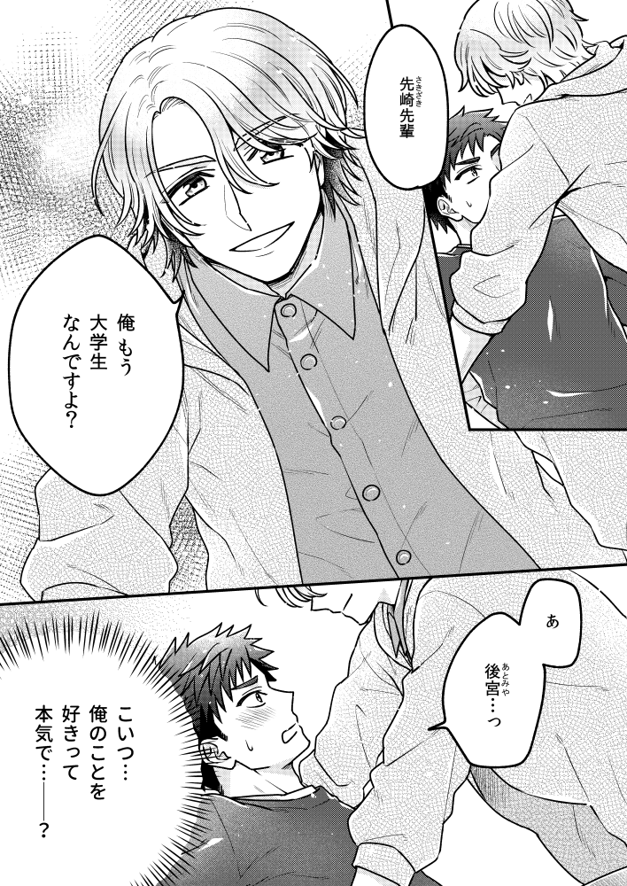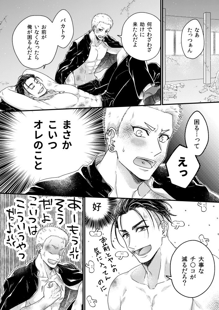 @Usui_Seinosuke @YumihariChirima #ちりくずBLトーク #創作BL 海彗誠之介くんと作ったBLのワンシーン漫画です~! 奥手ノンケ大学生×不器用バリネコお兄さん✨✨✨ 居候していた沖名くんが出て行ってしまい、気持ちを自覚した猪狩くんは…?