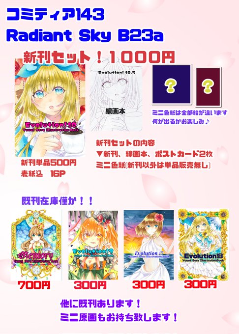 コミティア145のお品書きです! 今回の新刊は夏がテーマの1冊✨空気感がある作品を収録しました。既刊は全て残り僅かなのでお早めに!購入した方のみスケブ受付します。原画はツリーにて掲載します(*^^*)当日はスペースにてお待ちしてます! #コミティア #COMITIA145 #コミティア145