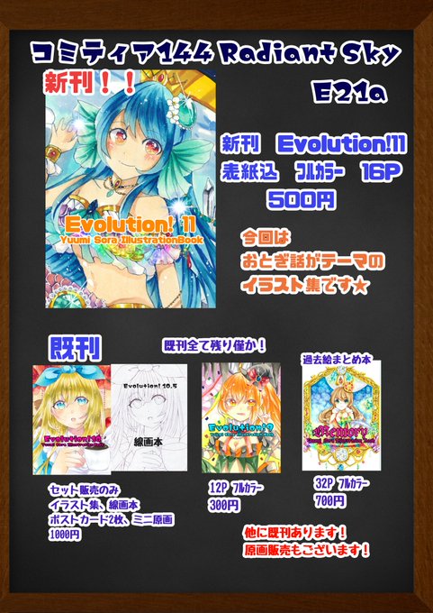 コミティア144のお品書きです!今回も新刊あります✨おとぎ話がテーマの本です! 既刊も僅かですが残ってます、前回のセットも少し残ってるので是非(*^^*) 当日購入した方のみスケブ受付します、詳しくは日にちが近くなったら告知します。 当日お待ちしてます!(*^-^) #COMITIA144 #コミティア144