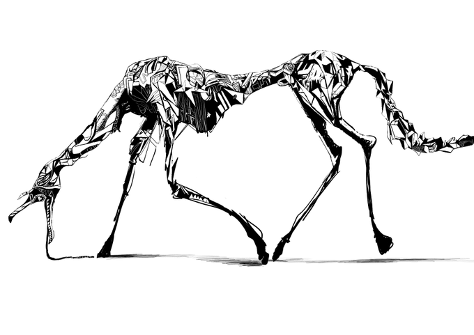 「やつらはさまざまな姿をしているが、たいていは多くの角がキュビズムの悪夢と同種の姿に圧縮されたものだ。」 #クトゥルフ神話 #イラスト #ティンダロスの猟犬