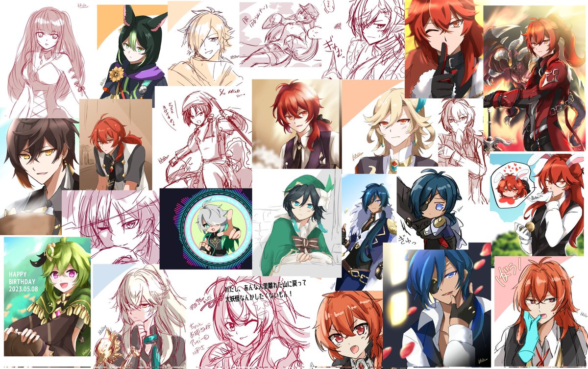 #今月描いた絵を晒そう 今月も全部纏めるのは無理でした/(^o^)\ (省いたのもあるけど) 今月はタグとか○○の日とかテーマを持たせつつ描いたりしたかな。あと指先ツールにハマったり。来月もたくさん描くぞー✨✨