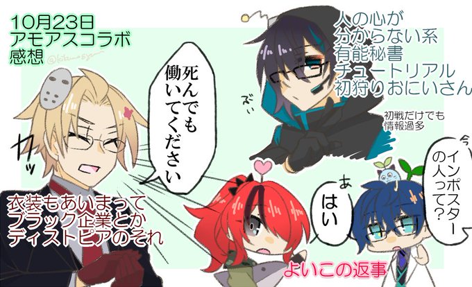 15 231 @tos 先日のアモアスコラボの好きだったところちょこっとだけ #クリ笑イト #灰画 #まめねことレオス #レインの依頼書 21/10/26 21:03