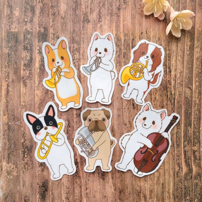 0 6 #ハンドメイド #犬 #いぬ #吹奏楽 #楽器 #音楽 #イラスト #シール 吹奏楽わんこステッカー作りました 今週末、ミンネにて販売開始予定です 21/03/24 22:23