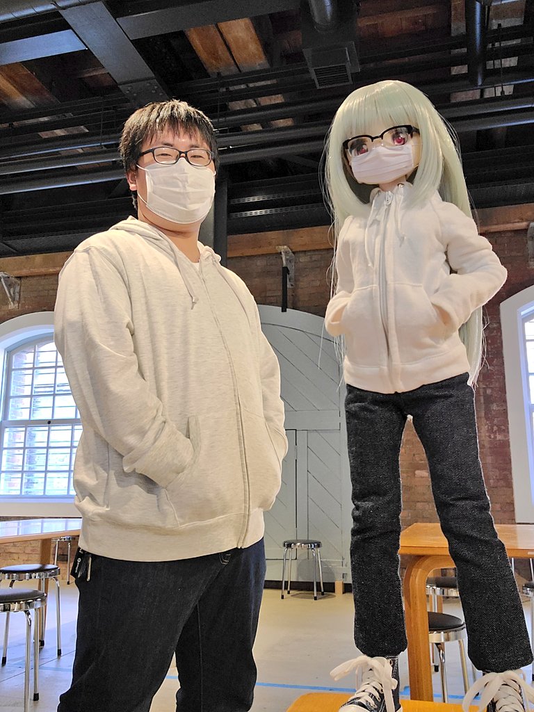 #ドールとオーナー このあんなちゃんの格好がお気に入りな理由は唯一お揃いコーデしたからではなかろうか🤔 メガネ マスク パーカー ジーパン スニーカー