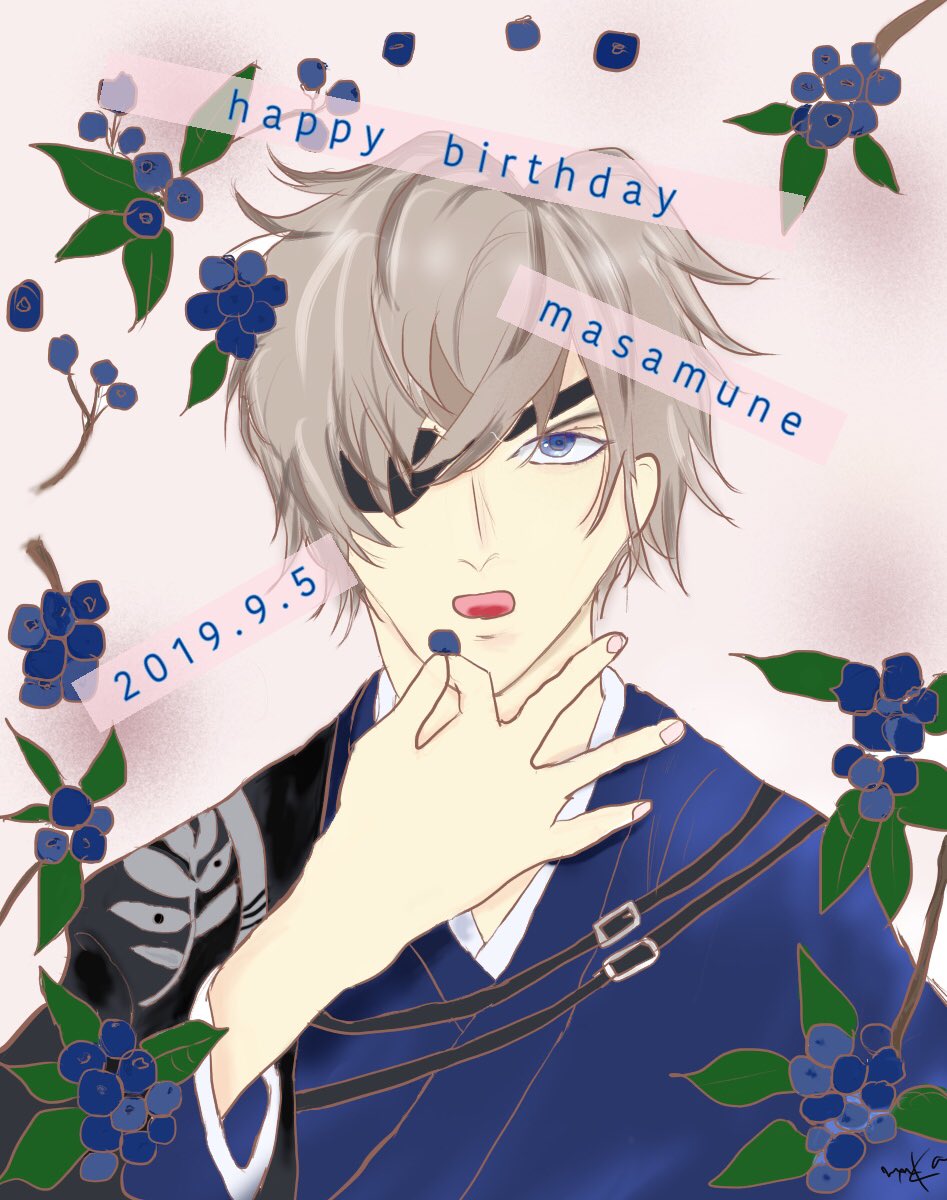 #伊達政宗誕生祭 #伊達政宗誕生祭2019 #イケメン戦国 政宗おめでとうございます。イケシリで、一番最初に選んだ√は、政宗でした。今年は、描けた。武将×果物シリーズ、政宗は、色合い的にブルーベリーかな。