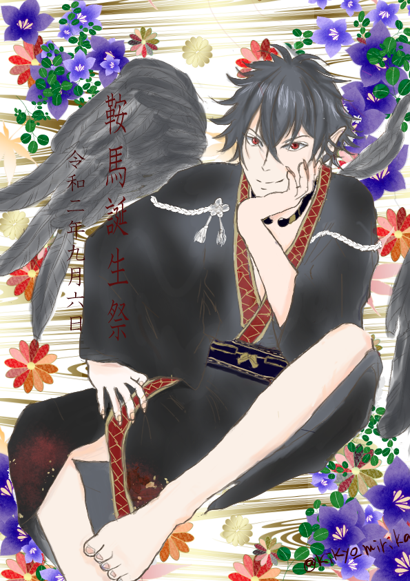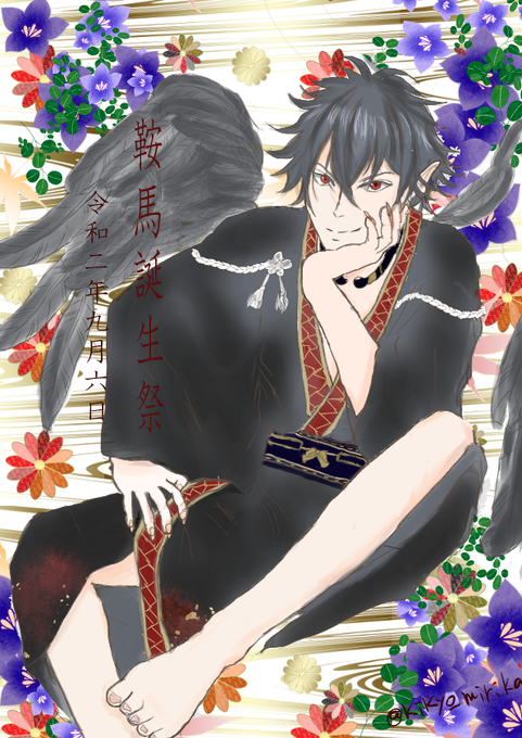 #漆黒の羽根が天空に舞う鞍馬誕生祭2020 #源氏伝 #源氏伝FA 鞍馬お誕生日おめでとうございます。お誕生日を記念して鞍馬、初描きです。間に合ってよかった。 玉藻と鞍馬の名(迷?)コンビあやかしが大好きです。