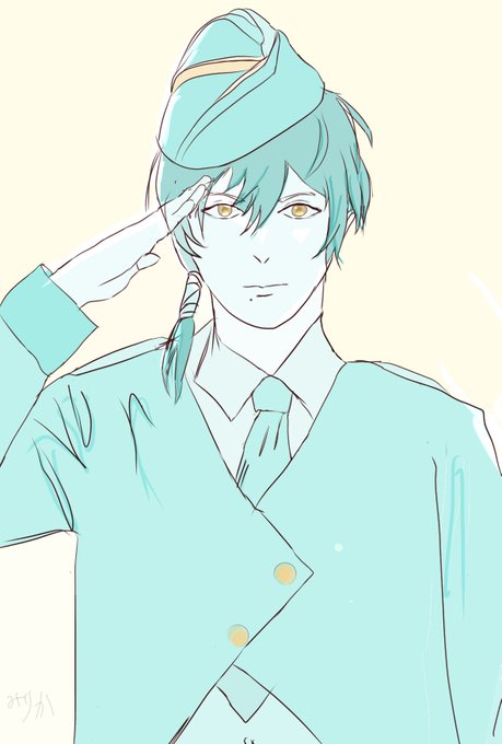 #イケシリ乙版深夜の真剣お絵描き文字書き60分一本勝負 お題→制服 イケメン戦国/義元さん 遅刻参加、申し訳ありません。所要時間1時間ぴったりで。久しぶり過ぎて、ちゃんと塗れてない💦 義元さんにギャリソンキャップ(舟形帽)を被せてみました。