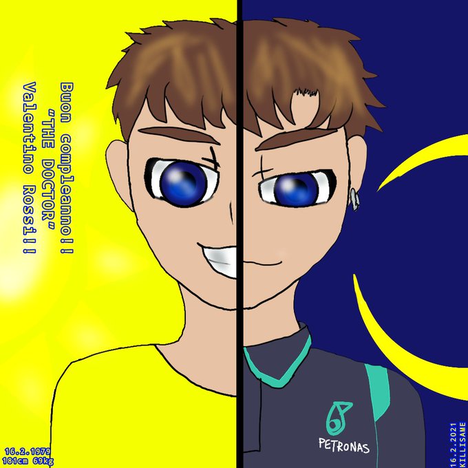 Buon compleanno!! Valentino Rossi(@ValeYellow46)!!🥳🥳🥳 Happy Birthday!!Valentino Rossi!! 誕生日おめでとう!!バレさん!! 42歳とは思わない顔付きに私は大好きです!! #MotoGP_jp #VR46 #ろっしふみがんばって #birthdayboy #ValentinoRossiDay #アイビスペイント