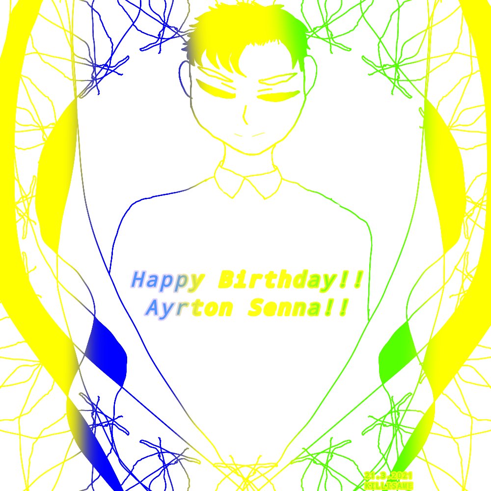 Feliz Aniversário!!Ayrton Senna!!🥳🥳🥳 Happy Birthday!!Ayrton Senna!!🥳🥳🥳 誕生日おめでとう!!セナさん!! ヘルメットに因んでスクリーンにしてみました! 生きていたら61歳ですね🤔🤔 #F1jp #AyrtonSenna #birthdayboy #アイビスペイント #SennaSempre