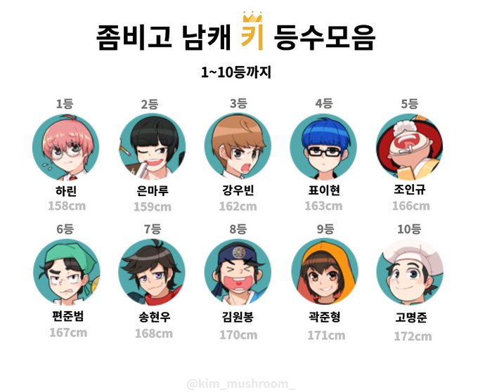 230 371 좀비고 남캐들 키등수표~🏫 키차이 연성이 많이 늘어났으면 좋겠다는생각으로...만들었습니다 자유롭게써주세요..💕 #좀비고 여러분의 최애는 몇등일지...~! 20/09/19 16:24
