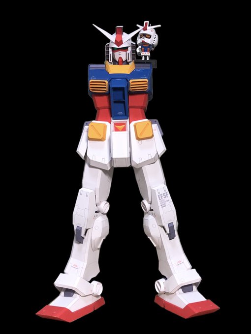 June さんのガンダム下半身できた。 迫力ある 左肩にいるのは1/1のガンプラくん 台座込みで8.5cmのはずだけど、ちょっと大きい気がするな #ガンダム #ペーパークラフト #ペパクラ #papercraft #papermodel